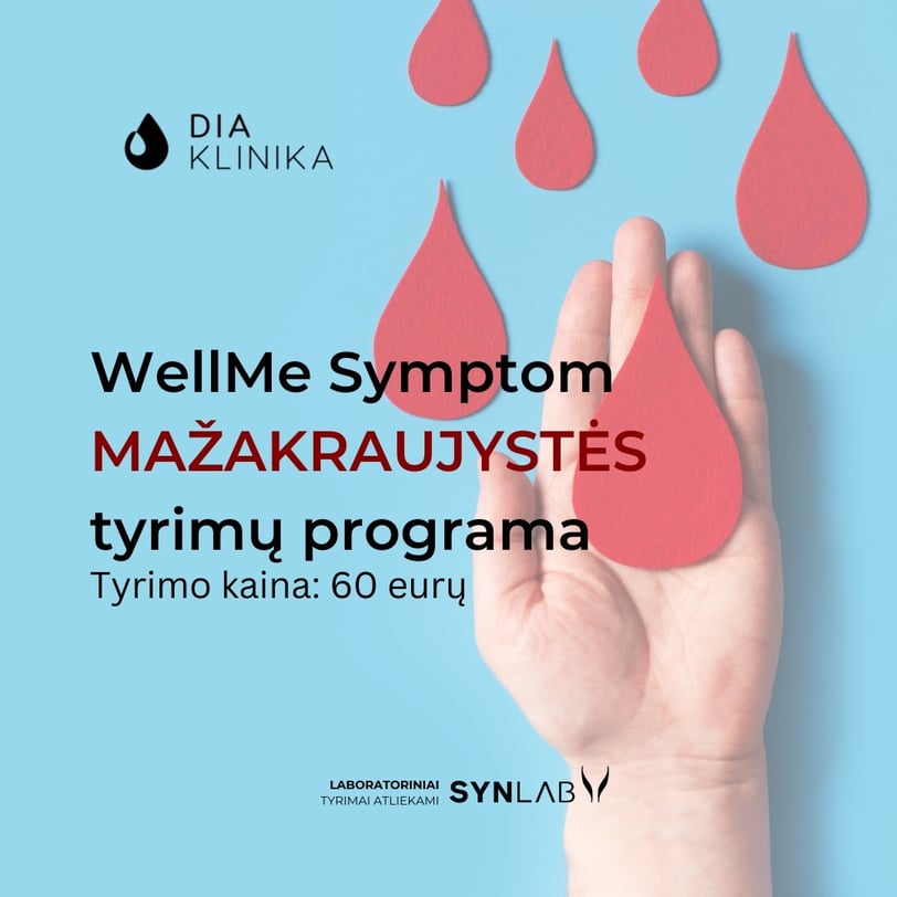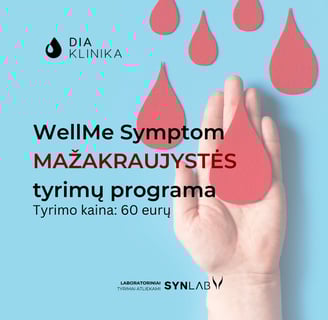 Geležies trūkumas 80 proc. atveju yra mažakraujystės priežastis, kuri gali prasidėti nepriklausomai nuo amžiaus ar lyties. WellMe Symptoms MAŽAKRAUJYSTĖS tyrimų programa padės nustatyti ar organizme yra pakankamas kiekis medžiagų, dėl kurių stygiaus gali vystytis anemija.