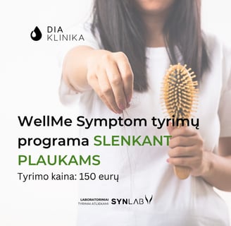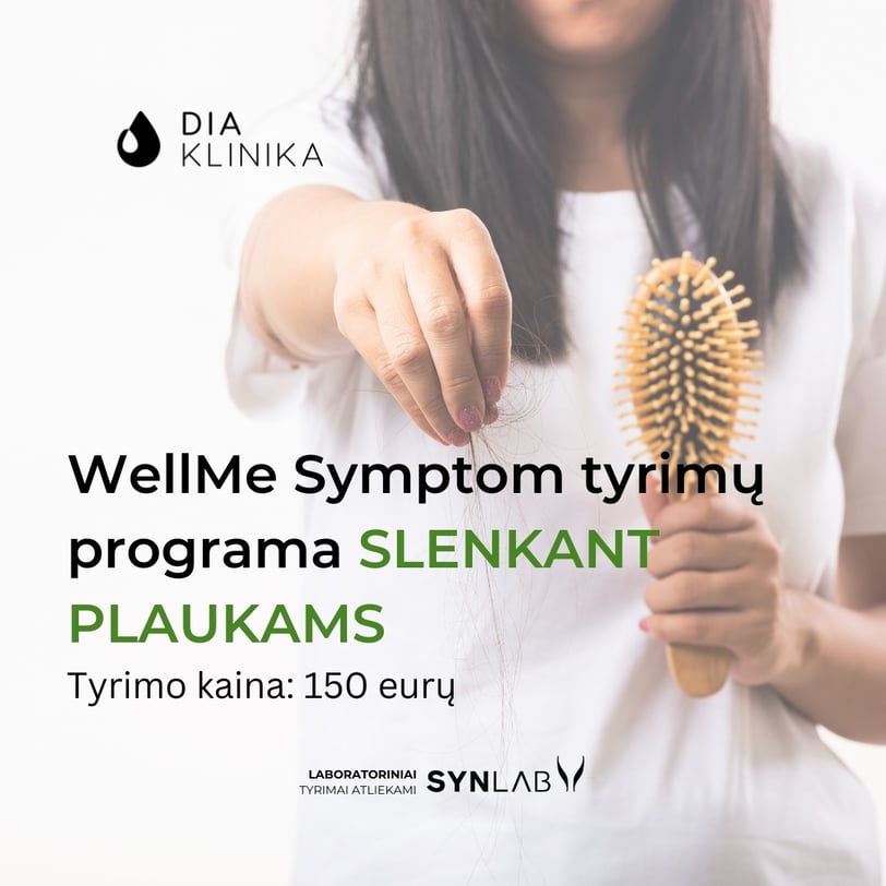 WellMe Symptom tyrimų programa SLENKANT PLAUKAMS padės nustatyti galimas plaukų slinkimo priežastis ir leis imtis reikiamų veiksmų, norint džiaugtis gražiais ir žvilgančiais plaukais.